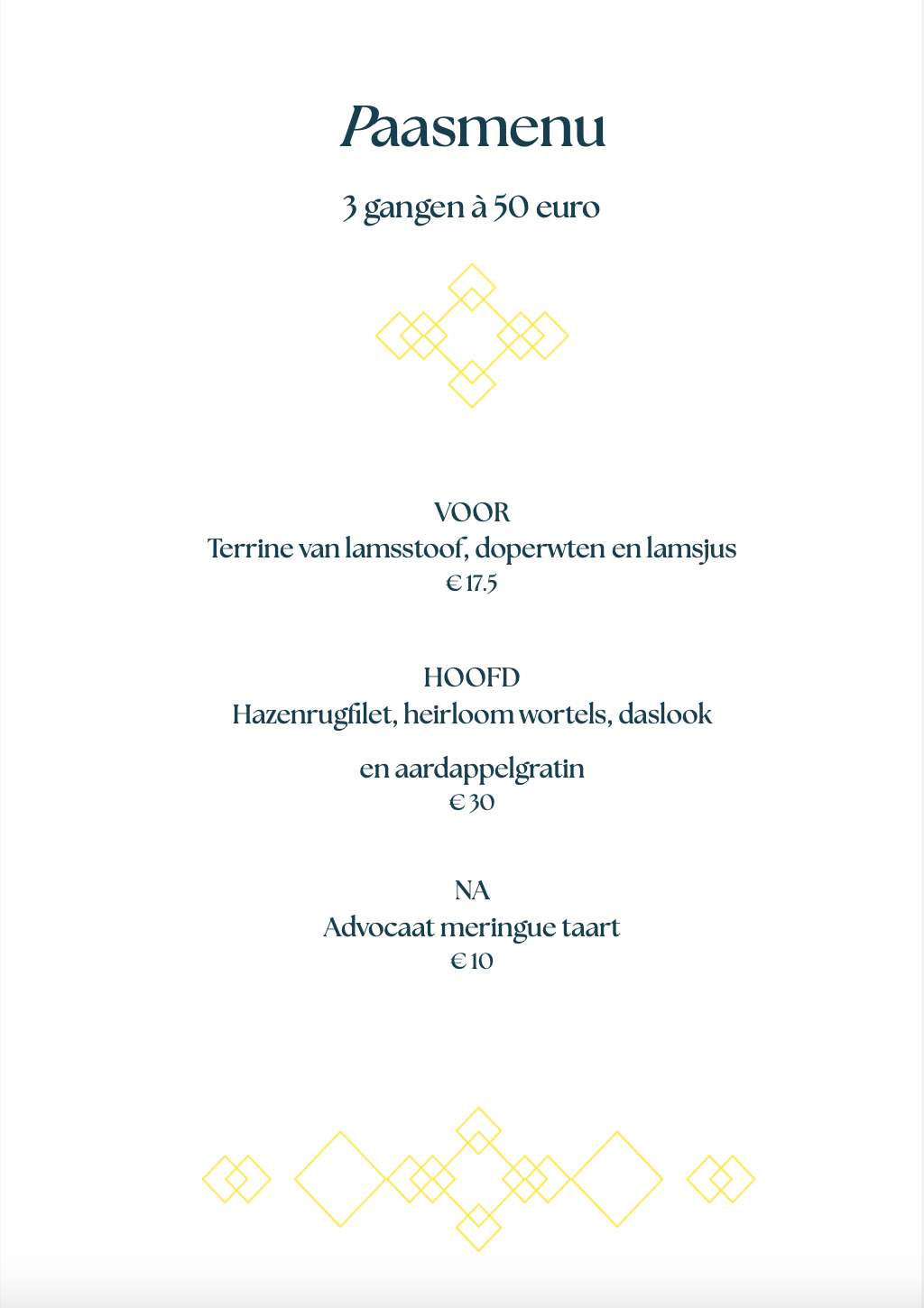 Vanaf 12:00 uur verwelkomen we je graag voor een sfeervolle paasbrunch of diner. Kies voor ons speciaal samengestelde 3-gangen paasmenu à 50 euro per persoon of bestel naar wens van de à-la-cartekaart.