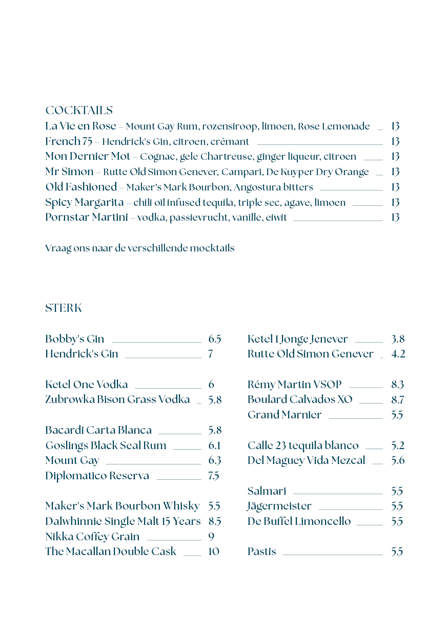 Iedere eerste zondag van de maand bij Bar Simon: onze Bottomless brunch. Van 12:00 tot 16:00 uur serveren wij de lekkerste brioche broodjes met onder andere steak tartare, zalm of oeufs benedictine. Daarbij kun je je 90 minuten lang onbeperkt te goed doen aan mimosa’s, bloody mary’s of glaasjes crémant voor 22.50 euro per persoon. Boek een tafel via de reserveringsknop.